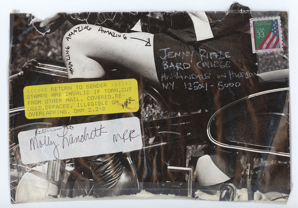 “Molly my dear…” reads the opening page in Riffle’s handwriting, “it just started raining. I love you, Jenny”. In the subsequent pages, Riffle and Landreth picture themselves in moments of intimacy and cheeky displays of affection. As writer Genevieve Hudson notes, they “taught each other what it was like to be friends and lovers and young queer artists at a time when queer representation was hard to find. And since they could not see images of their life reflected in the world, they made images of themselves.”